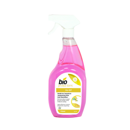 Formulated with a combination of powerful non oxidising biocides that have proven efficacy against a wide range of bacteria, fungi, algae and enveloped viruses. Available in 750ml and 5 Litres Sta-Kill’s performance is especially evident in the presence of hard water and organic soiling where most other products fail and when tested to EN1276 & EN13727 Sta-Kill passed against the following organisms: E. coli ……………….Eschenchia coli P. aeruginosa…….Pseudomonas aeruginosa S. aureus …………..Staphlococcus aureus E. hirae ………………Entercoccus hirae This demonstrates Sta-Kill’s broad range of activity against both gram negative and gram positive bacteria. Sta-Kill also contains urine stain neutralising agents and is the professional’s choice for eradicating malodours from urine, vomit, mildew, smoke, cooking and pet odours. With a neutral pH, Sta-Kill may safely be used on all surfaces, including carpets, fabrics, wood, ceramics, plastics and vinyl and as a pre spray prior to laundering.