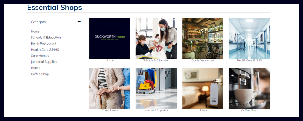 At Duckworth, our product range is diverse; allowing us to work with a variety of businesses from different industries in the UK. Due to this, not all products we supply are relevant for each customer. We recognise that our customers do not have time, nor want to spend time scrolling through products that are not applicable to them. From here our Duckworth Essential Shops have been created!