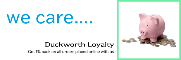 Get 1% back on every order placed online with us with our Duckworth Loyalty Points! For every £1 spent online you will receive 1 loyalty point, equalling 1p. Collect your points and redeem them at the checkout against your future orders.